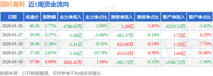 资金流向数据方面,本周国轩高科主力资金合计净流出4.95亿元,游资资金合计净流入1.35亿元,散户资金合计净流入3.6亿元。本周资金流向一览见下表: