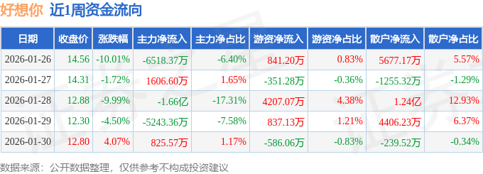 资金流向数据方面,本周好想你主力资金合计净流出2.59亿元,游资资金合计净流入4948.06万元,散户资金合计净流入2.1亿元。本周资金流向一览见下表: