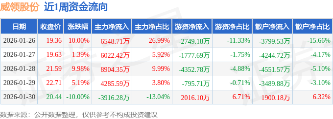 资金流向数据方面,本周威领股份主力资金合计净流入2.18亿元,游资资金合计净流出7659.26万元,散户资金合计净流出1.42亿元。本周资金流向一览见下表: