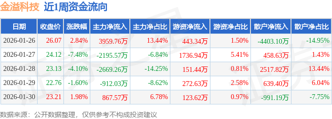 资金流向数据方面,本周金溢科技主力资金合计净流出949.53万元,游资资金合计净流入2727.97万元,散户资金合计净流出1778.44万元。本周资金流向一览见下表:
