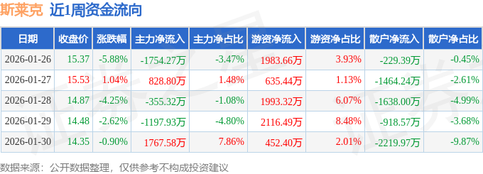 资金流向数据方面,本周斯莱克主力资金合计净流出711.14万元,游资资金合计净流入7181.31万元,散户资金合计净流出6470.17万元。本周资金流向一览见下表: