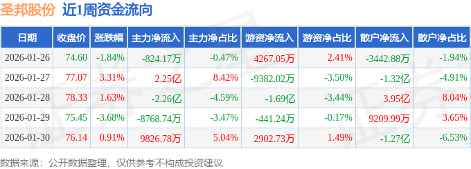 资金流向数据方面,本周圣邦股份主力资金合计净流入212.0万元,游资资金合计净流出1.96亿元,散户资金合计净流入1.94亿元。本周资金流向一览见下表: