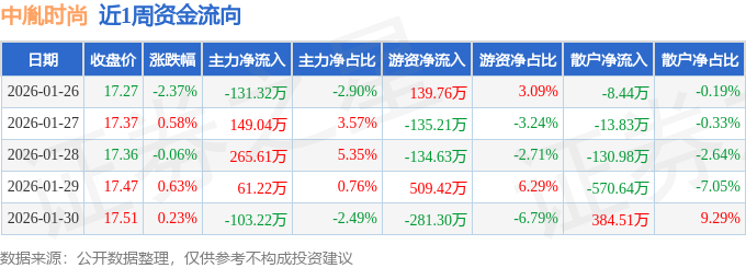 资金流向数据方面,本周中胤时尚主力资金合计净流入241.33万元,游资资金合计净流入98.04万元,散户资金合计净流出339.37万元。本周资金流向一览见下表: