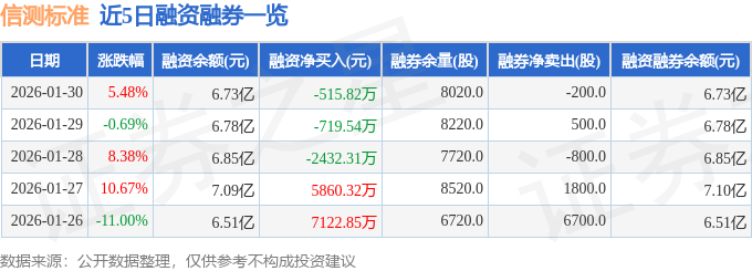 证券之星消息,截至2026年1月30日收盘,信测标准(300938)报收于37.92元,上涨5.48%,换手率7.82%,成交量16.48万手,成交额6.18亿元。