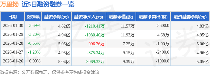 证券之星消息,截至2026年1月30日收盘,万里扬(002434)报收于9.92元,下跌3.69%,换手率2.93%,成交量38.4万手,成交额3.83亿元。