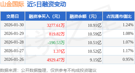 证券之星消息,1月30日,山金国际(000975)融资买入1.99亿元,融资偿还1.66亿元,融资净买入3277.61万元,融资余额10.91亿元,近20个交易日中有12个交易日出现融资净买入。