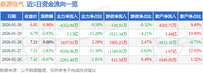 1月30日的资金流向数据方面,主力资金净流出4352.84万元,占总成交额9.18%,游资资金净流出149.91万元,占总成交额0.32%,散户资金净流入4502.75万元,占总成交额9.49%。