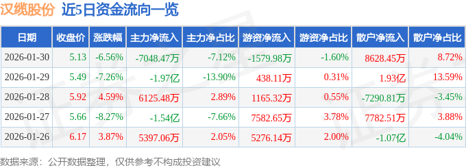 1月30日的资金流向数据方面,主力资金净流出7048.47万元,占总成交额7.12%,游资资金净流出1579.98万元,占总成交额1.6%,散户资金净流入8628.45万元,占总成交额8.72%。