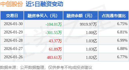 证券之星消息,1月30日,中创股份(688695)融资买入256.44万元,融资偿还360.44万元,融资净卖出104.01万元,融资余额9919.97万元。