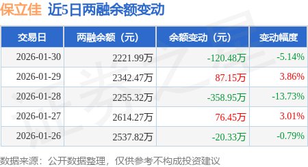 证券之星消息,1月30日,保立佳(301037)融资买入201.89万元,融资偿还322.37万元,融资净卖出120.48万元,融资余额2221.99万元,近20个交易日中有11个交易日出现融资净买入。