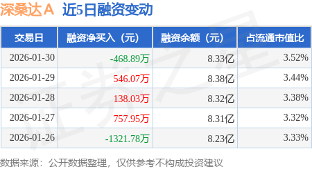 证券之星消息,1月30日,深桑达A(000032)融资买入5128.89万元,融资偿还5597.78万元,融资净卖出468.89万元,融资余额8.33亿元,近20个交易日中有12个交易日出现融资净买入。