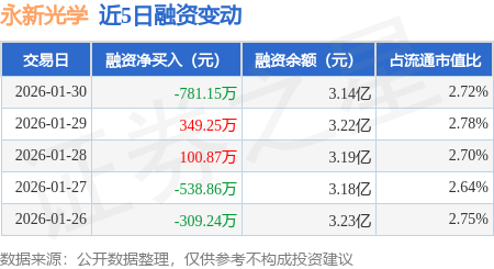 证券之星消息,1月30日,永新光学(603297)融资买入452.62万元,融资偿还1233.78万元,融资净卖出781.15万元,融资余额3.14亿元,近20个交易日中有11个交易日出现融资净买入。