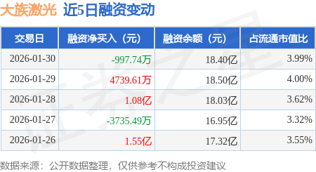证券之星消息,1月30日,大族激光(002008)融资买入1.89亿元,融资偿还1.99亿元,融资净卖出997.74万元,融资余额18.4亿元,近20个交易日中有11个交易日出现融资净买入。