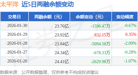 证券之星消息,1月30日,太平洋(601099)融资买入1.02亿元,融资偿还1.18亿元,融资净卖出1576.31万元,融资余额23.68亿元。