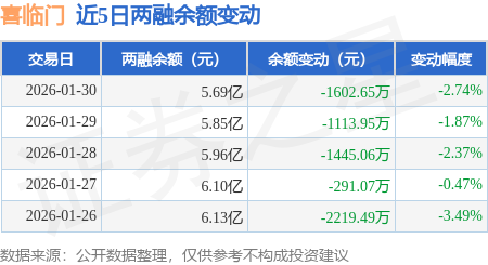 证券之星消息,1月30日,喜临门(603008)融资买入1933.62万元,融资偿还3537.31万元,融资净卖出1603.69万元,融资余额5.68亿元。