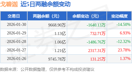 证券之星消息,1月30日,戈碧迦(920438)融资买入2309.18万元,融资偿还3949.31万元,融资净卖出1640.13万元,融资余额9668.9万元,近20个交易日中有11个交易日出现融资净买入。