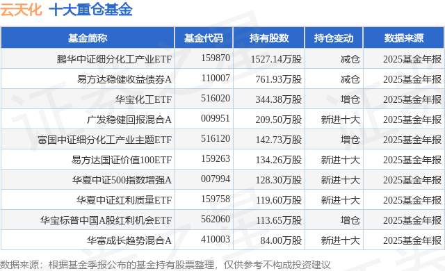 重仓云天化的前十大公募基金请见下表: