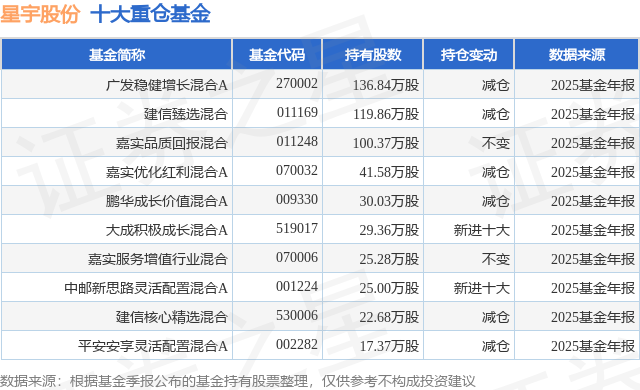 根据2025基金年报公募基金重仓股数据,重仓该股的公募基金共36家,其中持有数量最多的公募基金为广发基金的广发稳健增长混合A。广发稳健增长混合A目前规模为97.16亿元,最新净值1.7821(1月30日),较上一交易日下跌1.82%,近一年上涨20.66%。该公募基金现任基金经理为傅友兴 周智硕。傅友兴在任的基金产品包括:广发睿阳三年定开混合,管理时间为2019年1月31日至今,期间收益率为168.83%。周智硕在任的基金产品包括:广发多元新兴股票,管理时间为2025年8月21日至今,期间收益率为8.57%;广发行业严选三年持有期混合A,管理时间为2025年9月13日至今,期间收益率为-0.26%。