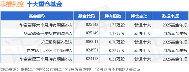 根据2025基金年报公募基金重仓股数据,重仓该股的公募基金共5家,其中持有数量最多的公募基金为华富基金的华富富泽六个月持有期债券A。华富富泽六个月持有期债券A目前规模为1.6亿元,最新净值1.0675(1月30日),较上一交易日下跌0.45%。该公募基金现任基金经理为黄立冬。黄立冬在任的基金产品包括:华富安福债券A,管理时间为2024年4月1日至今,期间收益率为9.74%;华富富润债券A,管理时间为2025年7月21日至今,期间收益率为1.32%;华富富源三个月持有期债券A,管理时间为2025年8月14日至今,期间收益率为1.98%;华富福盛一年持有期混合A,管理时间为2025年10月20日至今,期间收益率为1.35%。