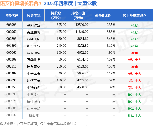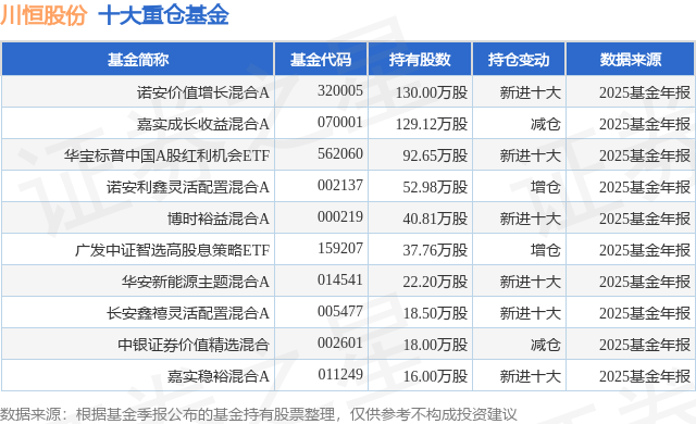 根据2025基金年报公募基金重仓股数据,重仓该股的公募基金共21家,其中持有数量最多的公募基金为诺安基金的诺安价值增长混合A。诺安价值增长混合A目前规模为12.1亿元,最新净值2.8431(1月30日),较上一交易日下跌3.13%,近一年上涨66.79%。该公募基金现任基金经理为吕磊。吕磊在任的基金产品包括:诺安双利债券发起,管理时间为2024年8月26日至今,期间收益率为12.05%。