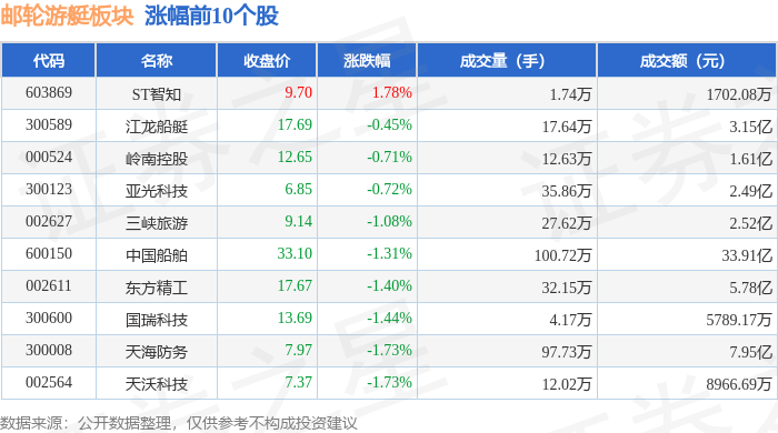 从资金流向上来看,当日邮轮游艇板块主力资金净流出1.99亿元,游资资金净流入1.27亿元,散户资金净流入7283.62万元。邮轮游艇板块个股资金流向见下表: