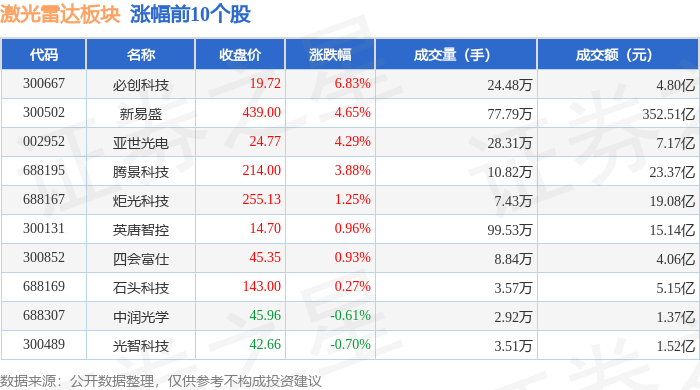 证券之星消息,2月2日激光雷达板块较上一交易日下跌3.44%,中际旭创领跌。当日上证指数报收于4015.75,下跌2.48%。深证成指报收于13824.35,下跌2.69%。激光雷达板块个股涨跌见下表: