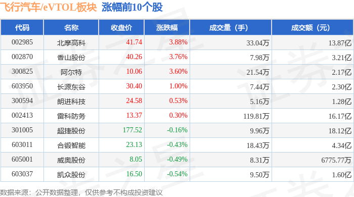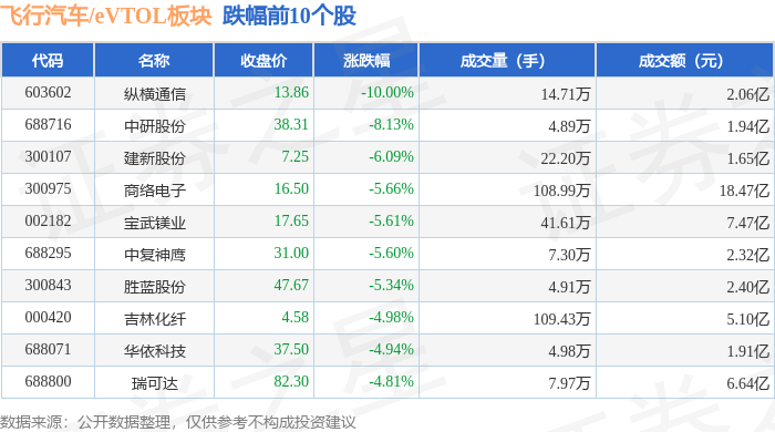 从资金流向上来看,当日飞行汽车/eVTOL板块主力资金净流出12.38亿元,游资资金净流入7.23亿元,散户资金净流入5.15亿元。飞行汽车/eVTOL板块个股资金流向见下表: