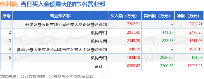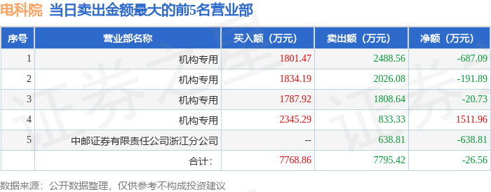 证券小知识:龙虎榜是交易所披露的竞价交易公开信息,现身龙虎榜的个股都是当日最为活跃的个股,是投资者日常重点关注的数据。交易所公布当日买入金额和卖出金额前五名的席位,其中一些席位代表特殊意义,如机构专用席位是指基金专用席位、券商自营专用席位、社保专用席位、券商理财专用席位、保险机构专用席位、保险机构租用席位、QFII专用席位等机构投资者买卖证券的专用通道和席位。深股通专用、沪股通专用为北向资金的交易席位。