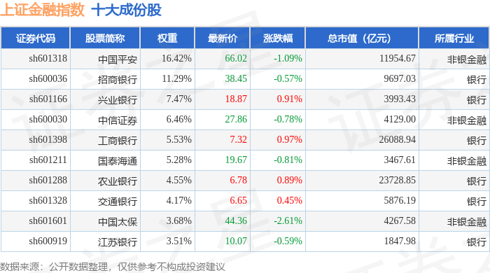 上证金融(000038)指数十大成份股详情如下: