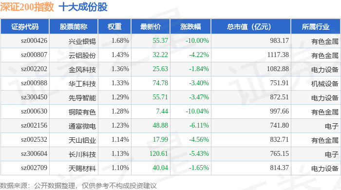 证券之星消息,2月2日,深证200(399009)指数报收于5646.81点,跌4.16%,成交2649.54亿元,换手率3.06%。当日该指数成份股中,上涨的有15家,利欧股份以6.33%的涨幅领涨,下跌的有184家,常山药业以12.29%的跌幅领跌。