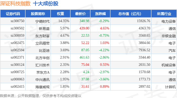 深证科技(399339)指数十大成份股详情如下: