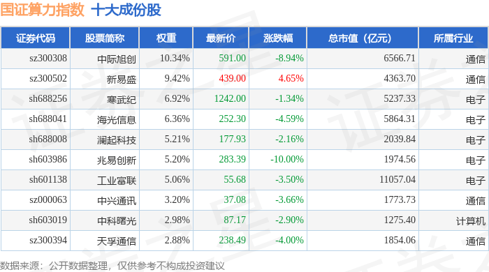 证券之星消息,2月2日,国证算力(399363)指数报收于9838.47点,跌3.53%,成交2585.89亿元,换手率2.04%。当日该指数成份股中,上涨的有7家,新易盛以4.65%的涨幅领涨,下跌的有43家,易华录以20.0%的跌幅领跌。