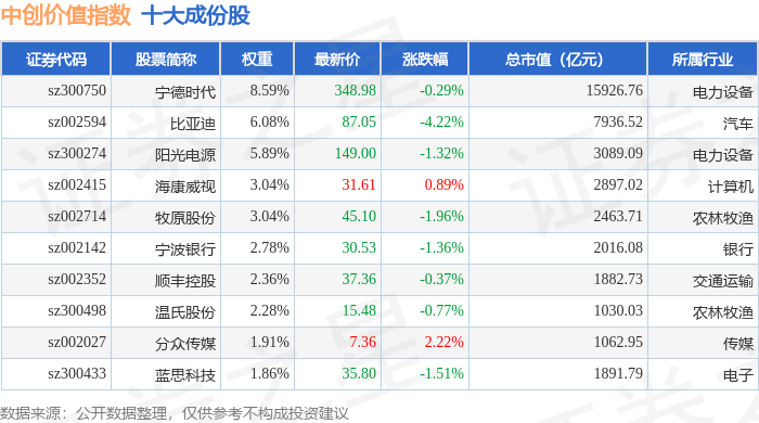 中创价值(399627)指数十大成份股详情如下: