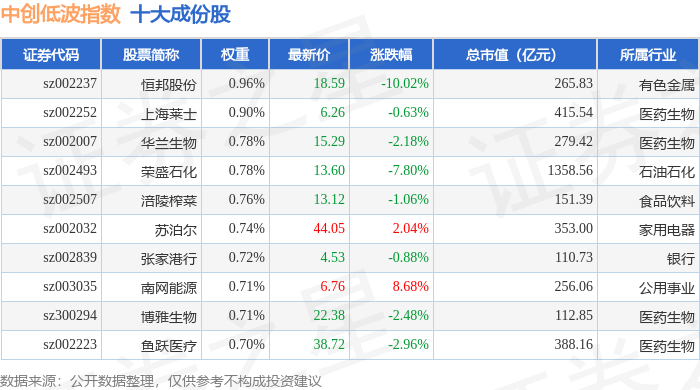 证券之星消息,2月2日,中创低波(399665)指数报收于2439.27点,跌2.92%,成交1630.93亿元,换手率2.18%。当日该指数成份股中,上涨的有22家,汉缆股份以9.94%的涨幅领涨,下跌的有178家,大北农以10.02%的跌幅领跌。