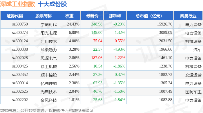 深成工业(399682)指数十大成份股详情如下: