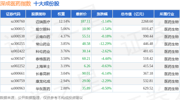 资金流向方面,深成医药(399685)指数成份股当日主力资金净流出合计11.94亿元,游资资金净流入合计8.96亿元,散户资金净流入合计2.98亿元。成份股资金流向详情见下表: