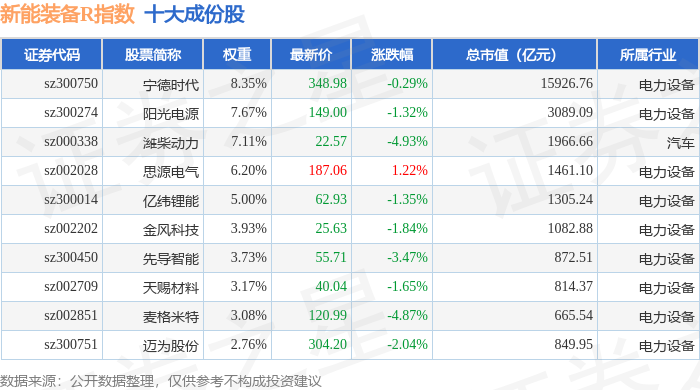 资金流向方面,新能装备R(470043)指数成份股当日主力资金净流出合计15.4亿元,游资资金净流入合计7.24亿元,散户资金净流入合计8.17亿元。成份股资金流向详情见下表: