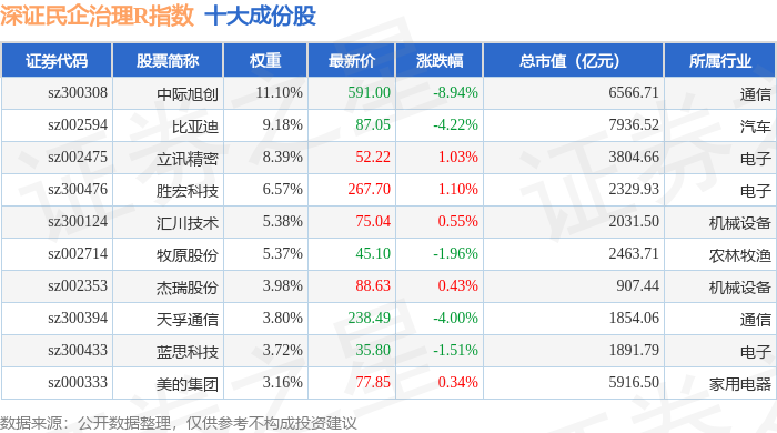 证券之星消息,2月2日,深证民企治理R(470058)指数报收于2224.05点,跌2.58%,成交1463.59亿元,换手率2.28%。当日该指数成份股中,上涨的有10家,晶盛机电以5.41%的涨幅领涨,下跌的有40家,中际旭创以8.94%的跌幅领跌。