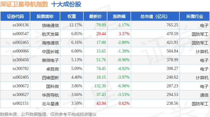 证券之星消息,2月2日,深证卫星导航(970050)指数报收于4393.62点,跌1.49%,成交530.52亿元,换手率6.34%。当日该指数成份股中,上涨的有8家,天银机电以8.95%的涨幅领涨,下跌的有33家,旋极信息以9.58%的跌幅领跌。