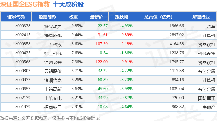 深证国企ESG(970055)指数十大成份股详情如下: