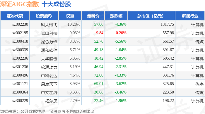 资金流向方面,深证AIGC(970075)指数成份股当日主力资金净流出合计25.16亿元,游资资金净流入合计5.4亿元,散户资金净流入合计19.76亿元。成份股资金流向详情见下表: