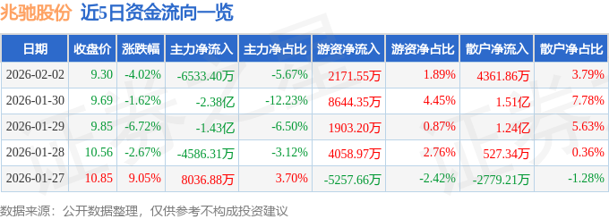 证券之星消息,截至2026年2月2日收盘,兆驰股份(002429)报收于9.3元,下跌4.02%,换手率2.69%,成交量121.57万手,成交额11.51亿元。