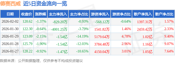 证券之星消息,截至2026年2月2日收盘,德赛西威(002920)报收于120.62元,下跌1.37%,换手率1.31%,成交量7.26万手,成交额8.9亿元。