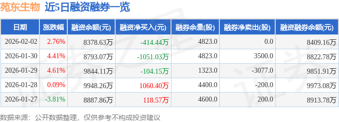 苑东生物融资融券信息显示,融资方面,当日融资买入2637.38万元,融资偿还3051.82万元,融资净偿还414.44万元。融券方面,融券卖出0.0股,融券偿还0.0股,融券余量4823.0股,融券余额30.53万元。融资融券余额8409.16万元。