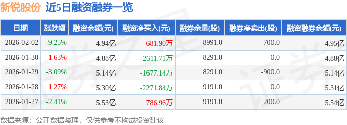 证券之星消息,截至2026年2月2日收盘,新锐股份(688257)报收于49.16元,下跌9.25%,换手率3.59%,成交量9.06万手,成交额4.64亿元。