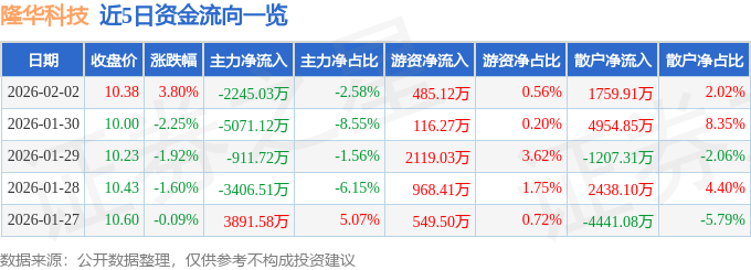 证券之星消息,截至2026年2月2日收盘,隆华科技(300263)报收于10.38元,上涨3.8%,换手率8.38%,成交量81.72万手,成交额8.72亿元。