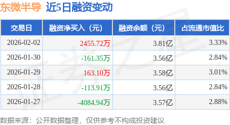 证券之星消息,2月2日,东微半导(688261)融资买入7358.57万元,融资偿还4902.85万元,融资净买入2455.72万元,融资余额3.81亿元。