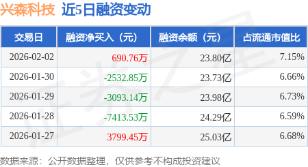 证券之星消息,2月2日,兴森科技(002436)融资买入1.52亿元,融资偿还1.45亿元,融资净买入690.76万元,融资余额23.8亿元,近20个交易日中有11个交易日出现融资净买入。