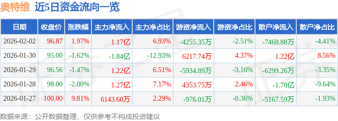 2月2日的资金流向数据方面,主力资金净流入1.17亿元,占总成交额6.93%,游资资金净流出4255.35万元,占总成交额2.51%,散户资金净流出7468.88万元,占总成交额4.41%。
