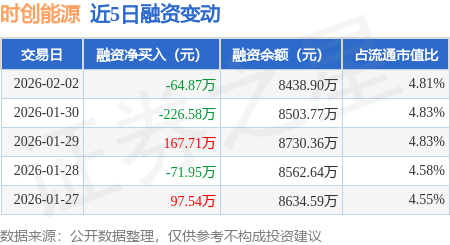 证券之星消息,2月2日,时创能源(688429)融资买入337.08万元,融资偿还401.95万元,融资净卖出64.87万元,融资余额8438.9万元,近20个交易日中有11个交易日出现融资净买入。